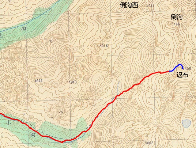 (迟布峰在地图上的位置。沿标有“5062”的山脊再往南就是5383米的玄武峰,东南则是5413米的婆缪峰。)