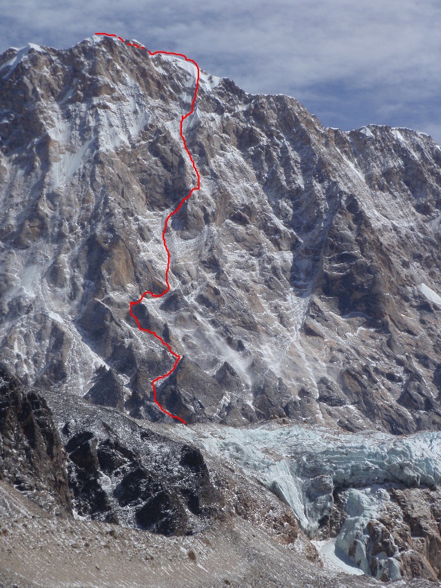 为了避免在自己的blog里纯灌水,发一张嘉子峰西壁的目标路线图(其实本打算贴阳朔的图,但是根本没有拍任何跟攀岩有关的,只有白山底下的英文版讹钱声明...)