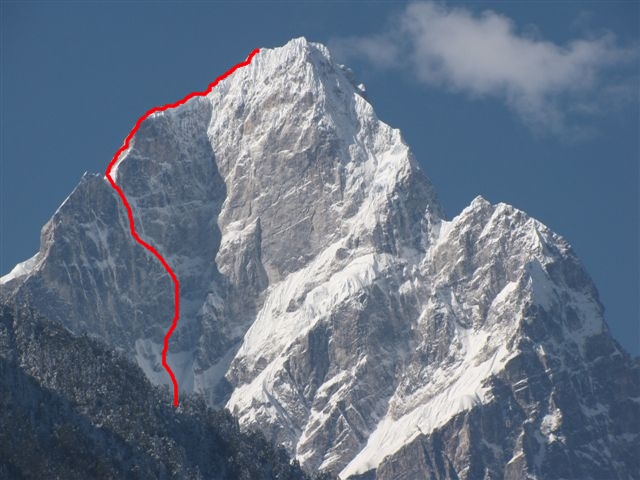 第5天,晴间多云:从6000米攀登到6200米的南山脊上,地形为陡峭/垂直的冰壁及混合攀登,共5段绳距,之后在山脊上宿营