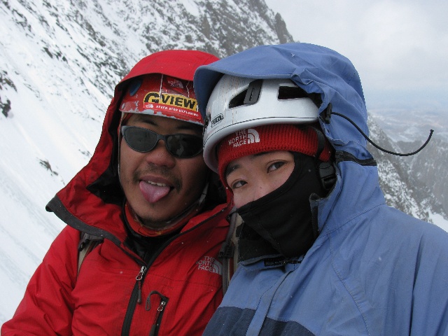 攀登中的照片到此为止,再下一张就是两天后出山时拍的日乌且照片了。至于黑夜、风寒与流雪中的下降,努力找寻着正确的方向,还有过背隙后Chris连带着老布一起滑坠,两人跟绳子绕成一团,还有再往下的路上通过冰裂缝中间半米宽的斜雪桥,顶着寒风寻找帐篷,视野里忽然出现那个小(黑?红?)点时的惊喜...这些都只能留存在记忆里了。到营地的时候Chris已经接近崩溃(换了谁都会是的,这只是她的第二座高海拔雪山而已),后来我们两个都吐了,搞得老布很怨念...还有Chris一开始不让我进帐篷,后来知道她是脱光了衣服钻进睡袋里,然后还一直觉得自己要失温,当然实际上没有任何事。在帐篷外面那几分钟好冷啊...