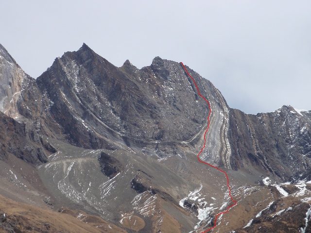 (因为收到了山野杂志4月样刊,才想起把全文贴到这里。图片不多,因为硬盘电路板还没有修,所以只从之前发出的邮件里回收了几张。第17段的定级“5.9+”是在当时我们两人都已经有好几个月没进行过成熟路线攀岩的情况下定出来的,并且因为一直在登山和攀冰所以小力量很差。3月份一到阳朔,开爬5.8都吃力,就意识到那一段就算定5.9也是很软的,“+”就更扯了。毕竟是当时的第一感觉,而且当时在山上的确也有相当高的commitment,定级就保留吧,只是说明一下这个“5.9+”其实相当言过其实,纯粹的攀爬难度可能连比较硬的5.8单段运动线都不如。)
