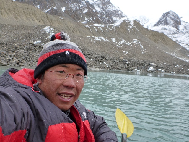 我们出山到康定休整了两天,26日回到大本营,期间撞上个大大的惊喜:小毛驴刚好这段时间到老榆林,他带了一艘充气皮艇,打算到勒多曼因下面那个小湖去划艇,这样我们也可以跟着爽一下了。27日的天气一般,湖面上刮着风,不过浪并不大。虽然手湿了很冷,虽然湖面小到几分钟就可以划一圈回来,虽然短柄的白水桨跟充气艇的宽船舷有点不搭配,但是像这样的划艇经历还是爽到难以用言语形容。
