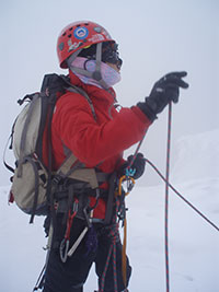 2010年8月16-20日,我和李兰、赵兴政搭档,从西侧(结斯沟一侧)攀登了位于双桥沟与结斯沟之间,海拔5694米的阿妣山。由于冲顶日(18日)当天从始至终天气较差,在顶峰附近的能见度始终不超过几十米,我们并不是非常确定最终登上的是否是真的顶峰,因为我们的最后一段路线是沿西南山脊攀登,而按照地图,西南山脊与东南山脊交汇的最高点在真正的主峰南侧百余米的地方,二者之间还隔着落差在20-40米之间的鞍部。实际情况究竟如何,只有今后在天气晴好的秋冬季再去攀登一次阿妣山才能确定了。不过,从西侧经由西南山脊登上“阿妣山南顶”,仍然可以算是一条相对较为完整的新路线。我们把这条路线命名为“颤抖”,定级IV,5.7/AI3/M2,高差800米(从海拔约4900米处碎石坡上的营地起算)。这应该是阿妣山迄今为止难度、危险性和投入度需求最低的一条路线,并且接近也比较方便,对于想要比较容易地登上这座美丽山峰的队伍,应该说是个不错的选择。