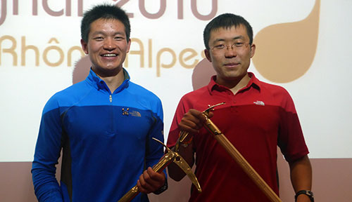 现场,两名年轻的中国登山运动员严冬冬和周鹏从罗阿大区副主席贝尔纳·苏拉日和高山集团负责人克里斯蒂安·特洛姆斯多夫的手中接过金冰镐象征性奖牌。严、周二人在2009年11月成功开辟幺妹峰中央南壁新路线,跻身中国最优秀的登山运动员之列。